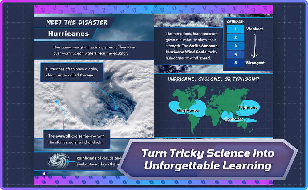 This book is a fast-paced, fact-filled weather duel perfect for curious readers. With vivid photos and simple explanations, it compares two powerful storms across size, speed, and damage.